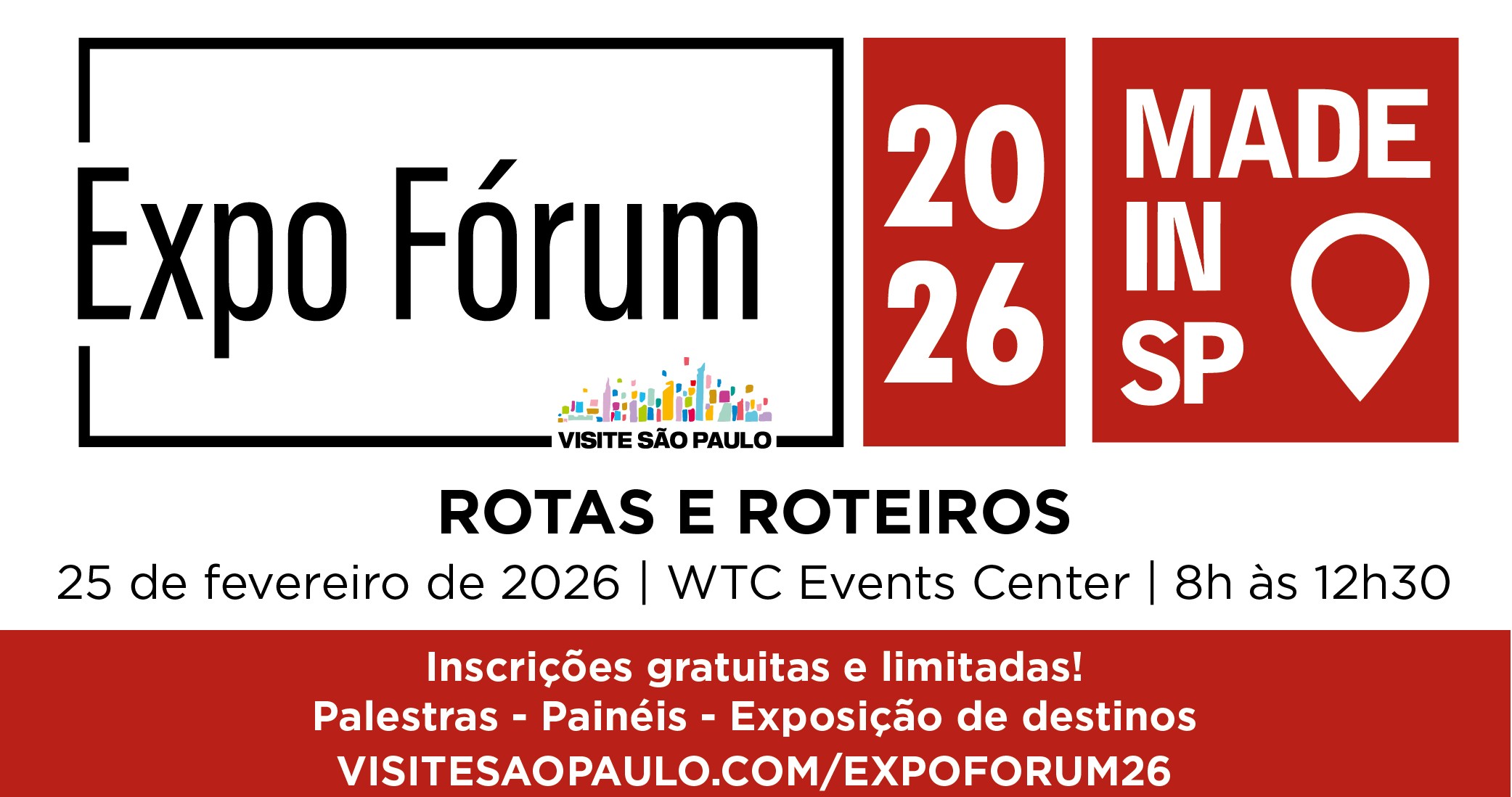 O 11º Expo Fórum Visite São Paulo será realizado em 25 de fevereiro, no WTC Events Center, com o tema “Rotas e Roteiros” e inscrições gratuitas. O evento reúne lideranças do turismo para debater tendências, integração regional e oportunidades de negócios no Estado.